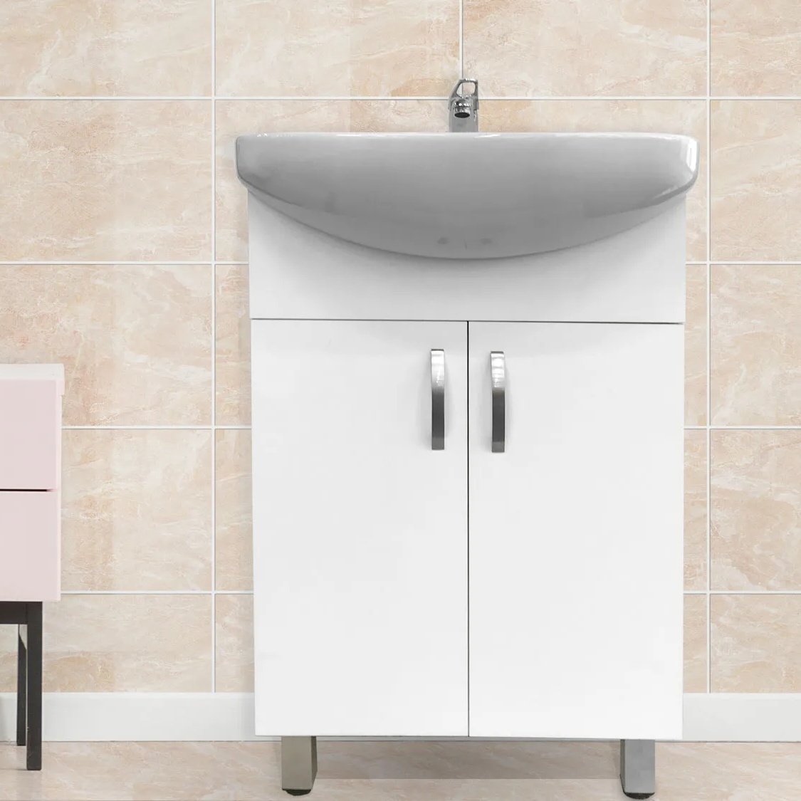 Lebo White 550 mm Floor-Standing Cabinet & Drop-In Basin