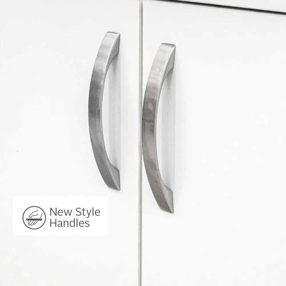 - Smooth, modern white finish gives a clean, neutral look that complements many bathroom decors