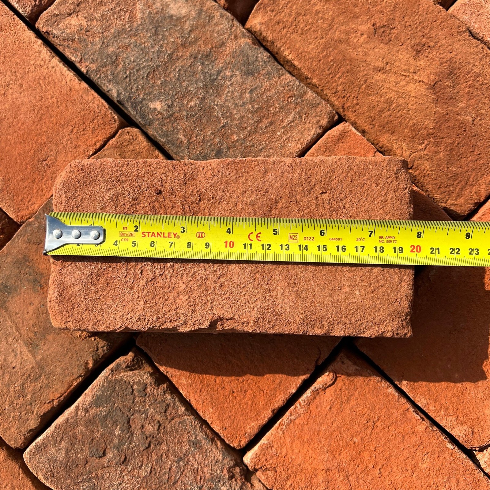 • Handmade clay paving brick with rustic textured finish