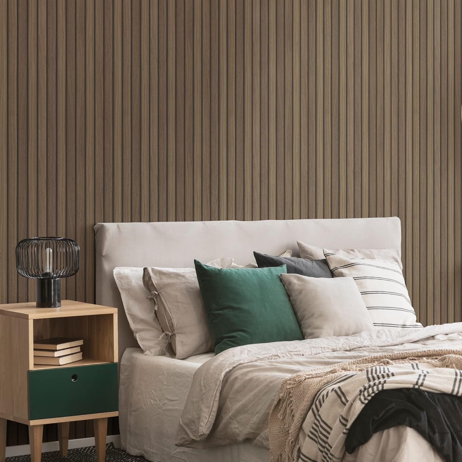 • Feature walls in living rooms, bedrooms—it gives a wood panels look without heavy carpentry.